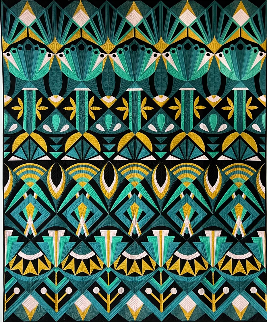 De quilt combineert foundation piecing techniek en applicatiewerk,